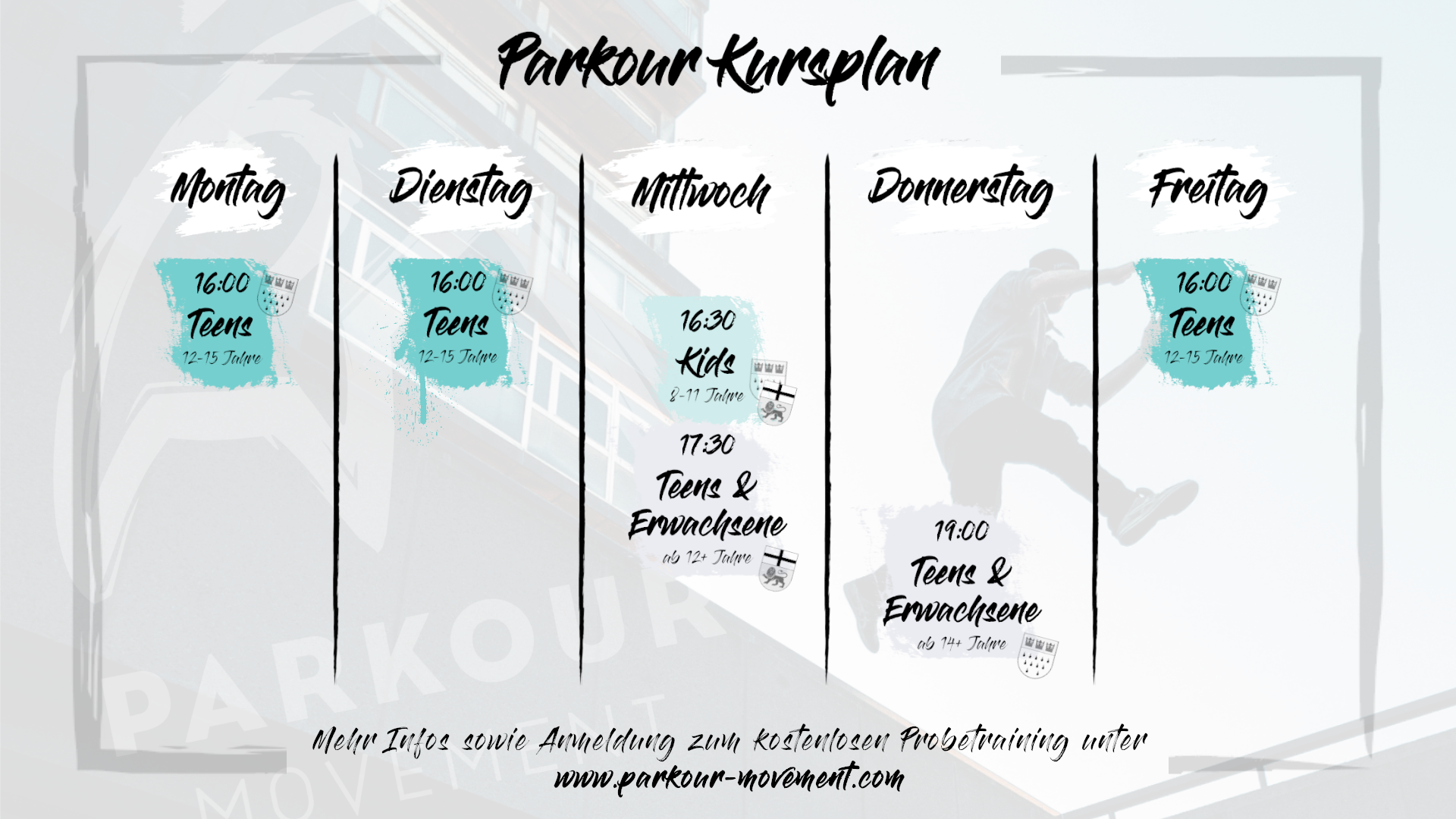 Mehr Infos zum Parkour Training für Kinder und Jugendliche bei Parkour Movement e.V. findest du hier!